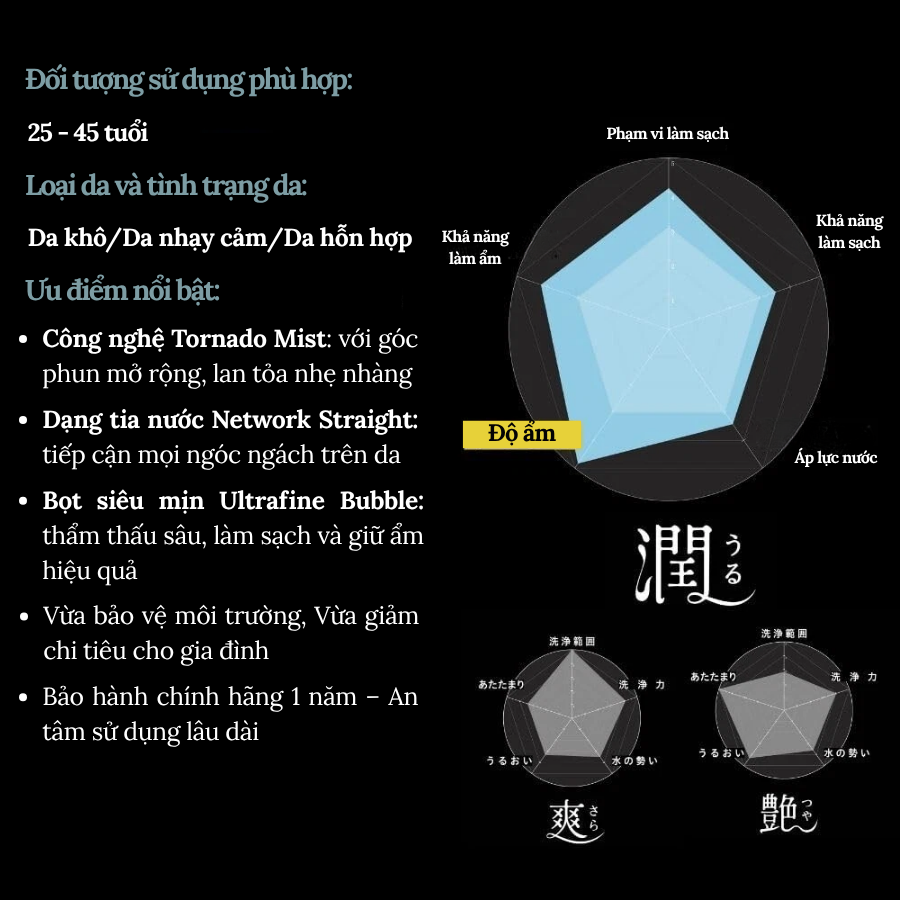 Vòi sen Mirable Uru là dòng sản phẩm cao cấp nhất của Mirable – thương hiệu vòi sen nổi tiếng từ Nhật Bản, và được nhiều chuyên gia da liễu khuyên dùng. Không chỉ đơn thuần để tắm rửa, Mirable Uru còn là công cụ chăm sóc da mỗi ngày, giúp loại bỏ lớp trang điểm, vi khuẩn và bụi bẩn siêu nhỏ bằng bong bóng Ultra Fine Bubble kết hợp ion dưỡng da. Với thiết kế “đỉnh” và chất liệu đạt chuẩn y tế Nhật Bản, Mirable Uru được xem là bước đột phá trong ngành thiết bị phòng tắm – mang đến trải nghiệm tắm “chuẩn spa” ngay tại gia.